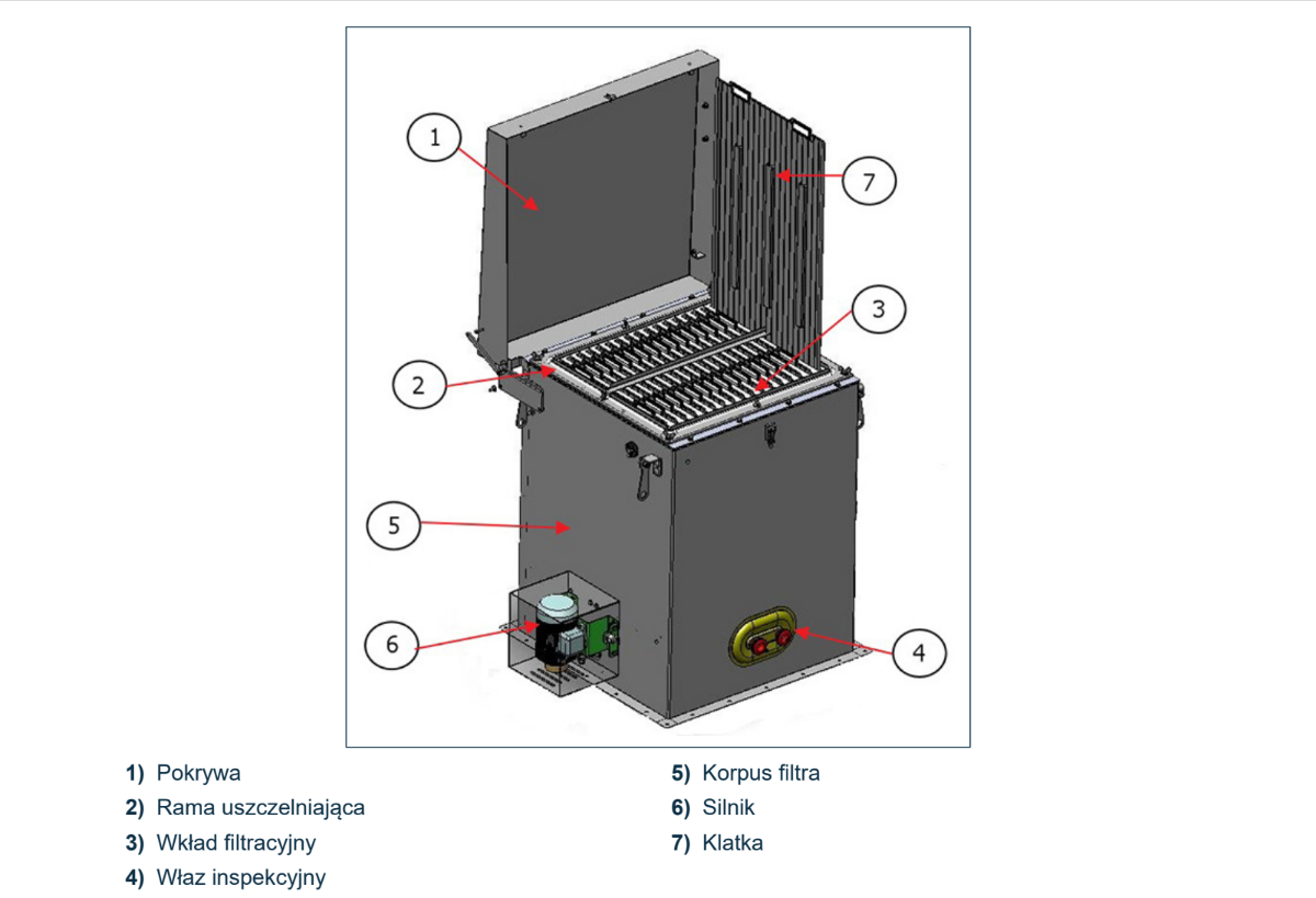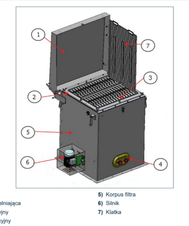 • zdejmowany panel przedni dla wygodnego przeglądu materiału filtra