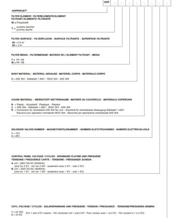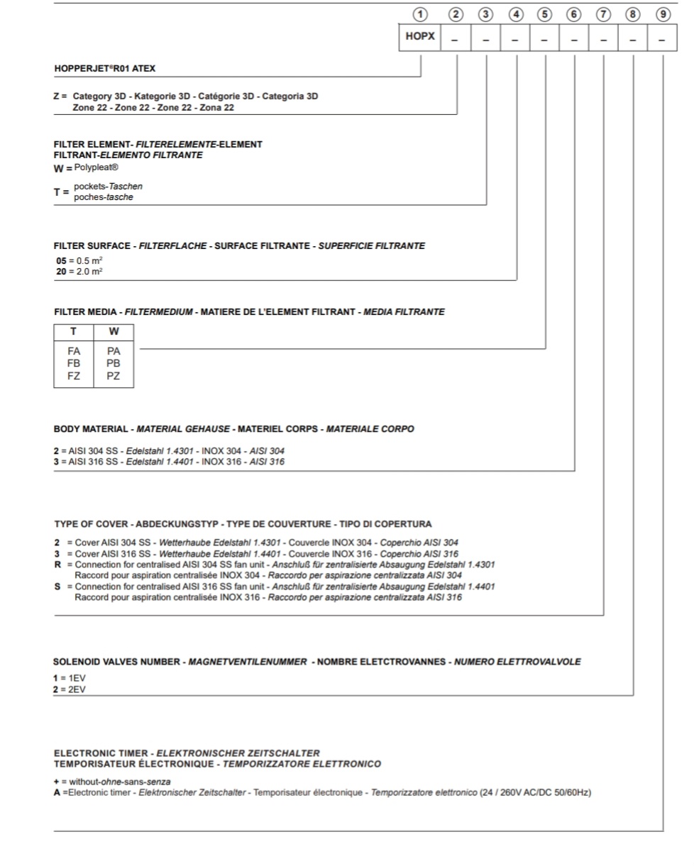 Filtr HOPPERJET® jest kompaktowym filtrem wentylacyjnym do odpylania zbiorników napełnianych mechanicznie. Pył, który jest oddzielany od powietrza poprzez pojedynczy wkład filtracyjny POLYPLEAT lub filtr workowy spada do zasobnika, a zintegrowany układ dysz czyszczących wewnątrz obudowy usuwa cząsteczki pyłu z wkładów filtracyjnych. Górna pokrywa chroni filtr przed warunkami atmosferycznymi.