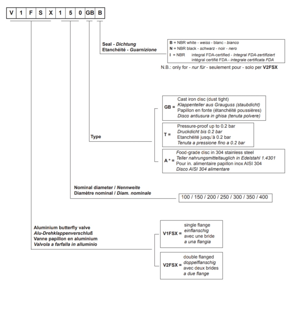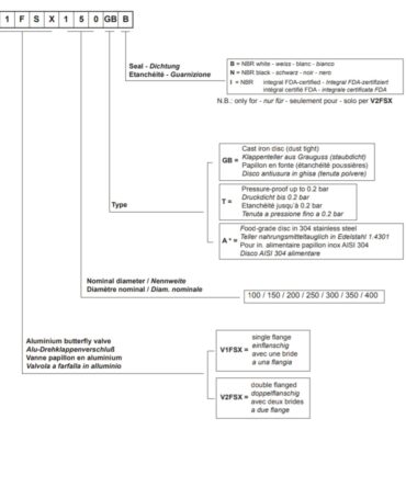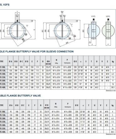 Przepustnice motylowe VFS składają się z dwóch odlewów ciśnieniowych połówek korpusu wykonanych ze stopu aluminium, tarczy obrotowej i sprężonej uszczelki z elastomeru. Wersja V1FS posiada górny kołnierz i wygiętą dolną sekcję dopasowaną do podłączenia elastycznego rękawa. Wersja V2FS jest wyposażona w identyczny kołnierz górny i dolny.