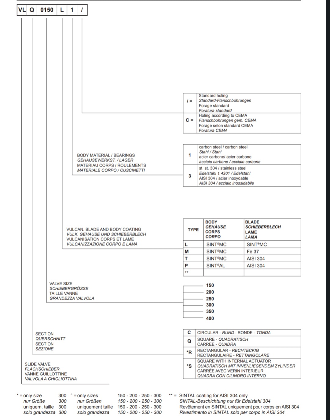 Zasuwy nożowe typu VL składają się z dwuczęściowej ramy ze stali węglowej, która jest częściowo pokryta kompozytem polimeru technicznego SINT® oraz noża wykonanego z tego samego materiału. Zastosowanie kompozytów polimeru technicznego SINT® podwyższa znacząco odporność na ścieranie w porównaniu z zasuwami tradycyjnymi, jest to rozwiązanie alternatywne w stosunku do wymiennych uszczelek kołnierzowych. W zasuwach VL występują trzy rodzaje otworów przelotowych VLC – okrągły, VLQ – kwadratowy, VLR – prostokątny. Dodatkowo wersja VLS z kwadratowym otworem przelotowym jest przystosowana pod siłownik pneumatyczny wbudowany w ramę.