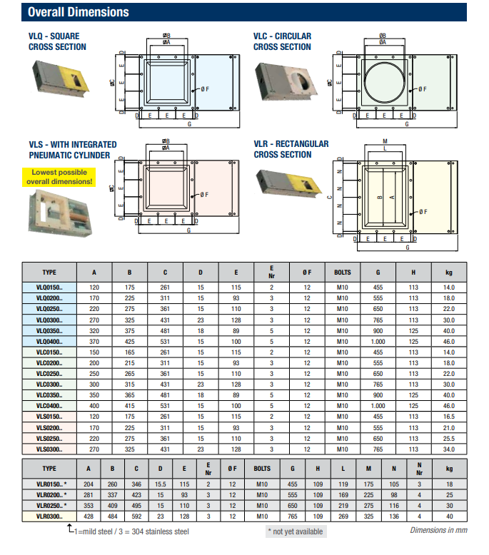 Zasuwy typu VL stosowane są tam, gdzie konieczne jest przerwanie strumienia transportowanego materiału – do wlotów i wylotów zbiorników, silosów, przenośników mechanicznych oraz do wlotów rękawów załadunkowych. Specjalna geometria zasuw nożowych VL i różne opcje konstrukcji umożliwiają ich zastosowanie w niemalże każdej gałęzi przemysłu, włączając żywnościowy. Dostępne w wersji ATEX.