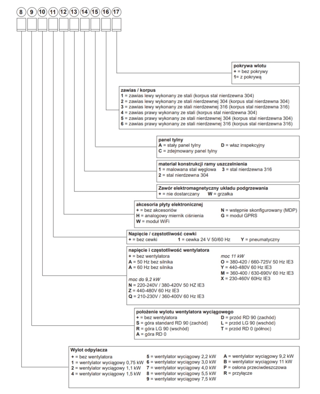 • wentylator dostępny w wersjach o różnych napięciach, częstotliwościach i mocy znamionowej