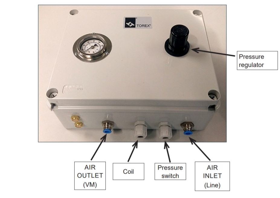 Skrzynka sterownicza VMX01N umożliwia regulację ciśnienia powietrza w zaworze zaciskowym VM.