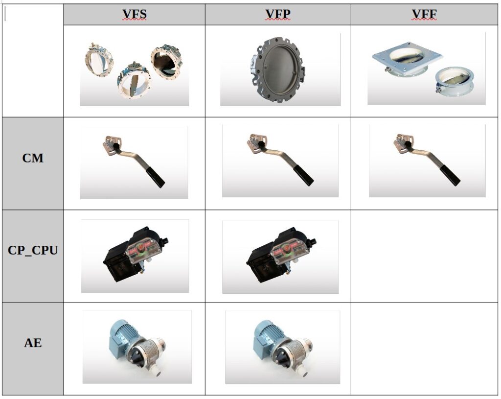 Przepustnice typu VFS i VFP występują również w wersjach: